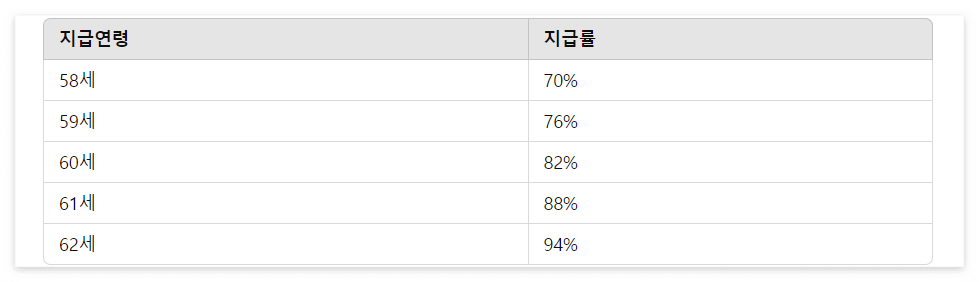 조기수령 시 지급연령에 따른 지급률은 다음과 같습니다.