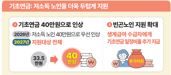 저소득 노인을 위한 기초연금액을 단계적으로 40만 원까지 인상하는 방안도 포함되어 있습니다. 퇴직연금 제도 역시 개선되어, 퇴직금의 누수를 방지하고 연금 수익률을 개선하는 방안이 추진됩니다.