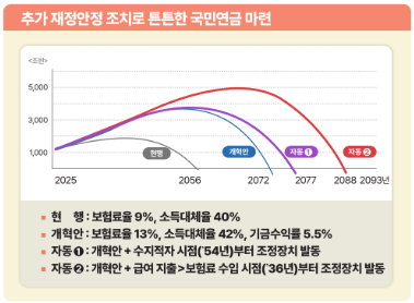 이번 개혁안은 세대 간 형평성을 고려해 보험료율 인상 속도를 차등화했습니다. 청년세대의 부담을 줄이고, 제도에 대한 신뢰를 높이기 위해 지급보장 규정을 명확히 법률로 규정할 예정입니다.