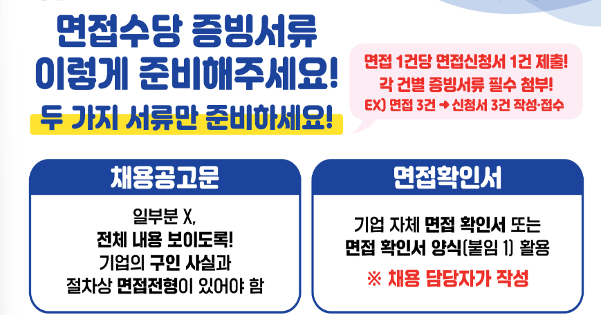 지원 금액: 연간 최대 50만 원까지 지원받을 수 있으며, 1회 면접당 최대 5만 원을 지원합니다.